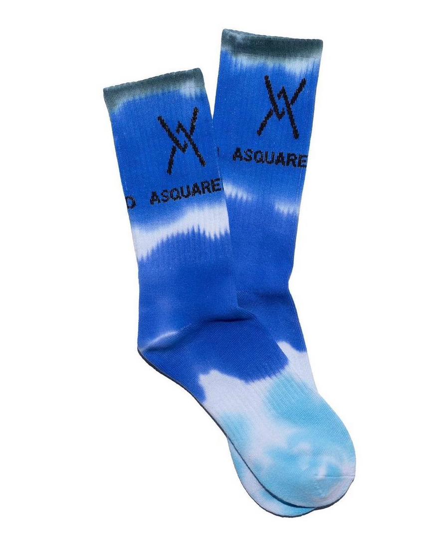 Elevate your accessory game with the ASQUARED Tie-Dye Crew Socks. Blending street-ready aesthetics with everyday comfort, these socks feature a vibrant, hand-dyed cobalt and cloud-white pattern that ensures no two pairs are exactly alike.